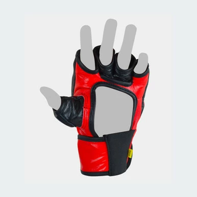 Amateur 6 ounce leather mixed martial arts competition glove. Curved designed helps keep a relaxed hand position and fingers tucked also adding in making a tight fist for optimum power. Fully opening wrist allows for easy on and off with hands wrapped and sufficient space in the hand compartment. Performance, comfort, power & safety all in one glove.