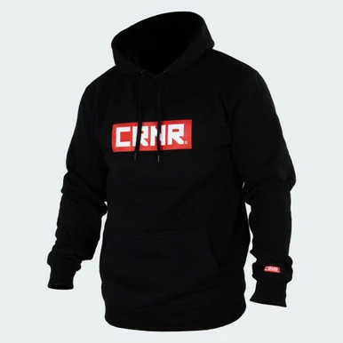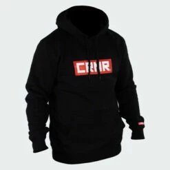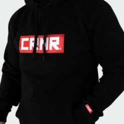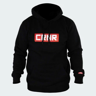 Clean heavyweight boxed logo hooded sweatshirt in our traditional Black, White & Red coloway