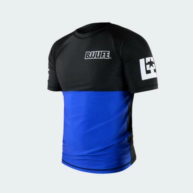 Blue Belt rank color IBJJF approved rash guard. Perfect for at the academy or in competition. Comfort-Fit design can be worn all day and is designed to be worn tucked in or untucked.