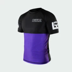 Purple Belt rank color IBJJF approved rash guard. Perfect for at the academy or in competition. Comfort-Fit design can be worn all day and is designed to be worn tucked in or untucked.