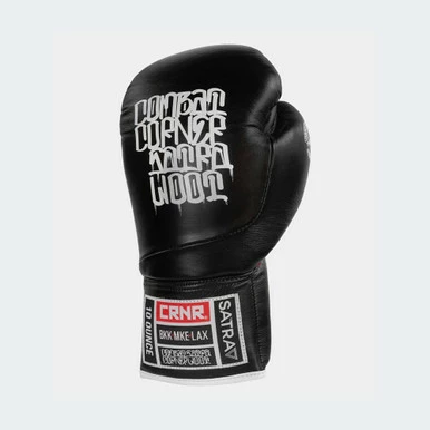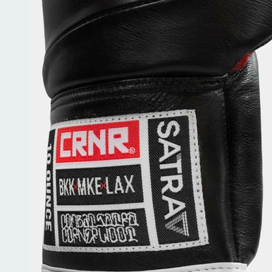 Combat Corner & Satrawoot Teamed up for a Limited 10oz. Lace Up Boxing Glove that pairs well with the all new HMIT Satraa x CRNR Muay Thai Shorts. Unique Red Liner and Black/Red Laces finish off this pro level glove with a touch of extra flavor.