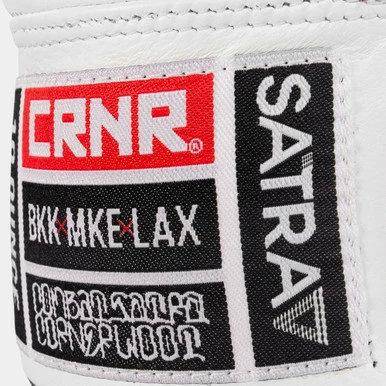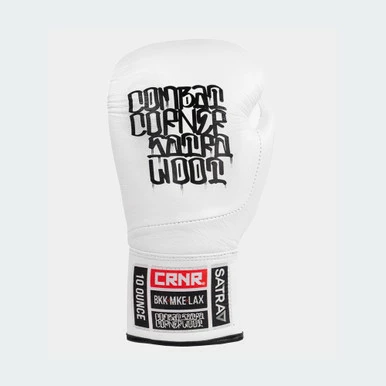 Combat Corner & Satrawoot Teamed up for a Limited 10oz. Lace Up Boxing Glove that pairs well with the all new HMIT Satraa x CRNR Muay Thai Shorts. Unique Red Liner and Black/Red Laces finish off this pro level glove with a touch of extra flavor.