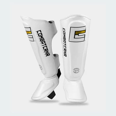 Professional grade Muay Thai shin guards expert craftsmanship from Bangkok, Thailand. The sleek contoured form fitting design with shock absorbing dual layer padding offers amazing protection and unimpeded movement.