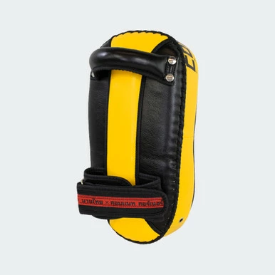 Traditional quality craftsmanship from Bangkok, Thailand. These heavy duty Thai Pads are made with ultra thick premium cowhide leather and a dense shock absorption padding. This model incorporates a single strap closure preferred by many trainers today. Built for years of abuse from knees, kicks, punches, elbows, and anything you can throw at them. The curved design aids in proper technique and offers a sweet spot for the athlete and trainer.