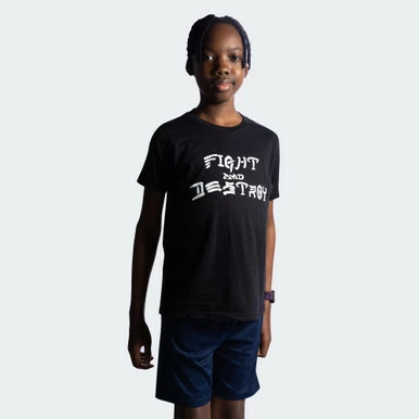 Super comfortable and fitting ringspun cotton/poly t-shirt with a nostalgic center chest Fight and Destroy imprint.